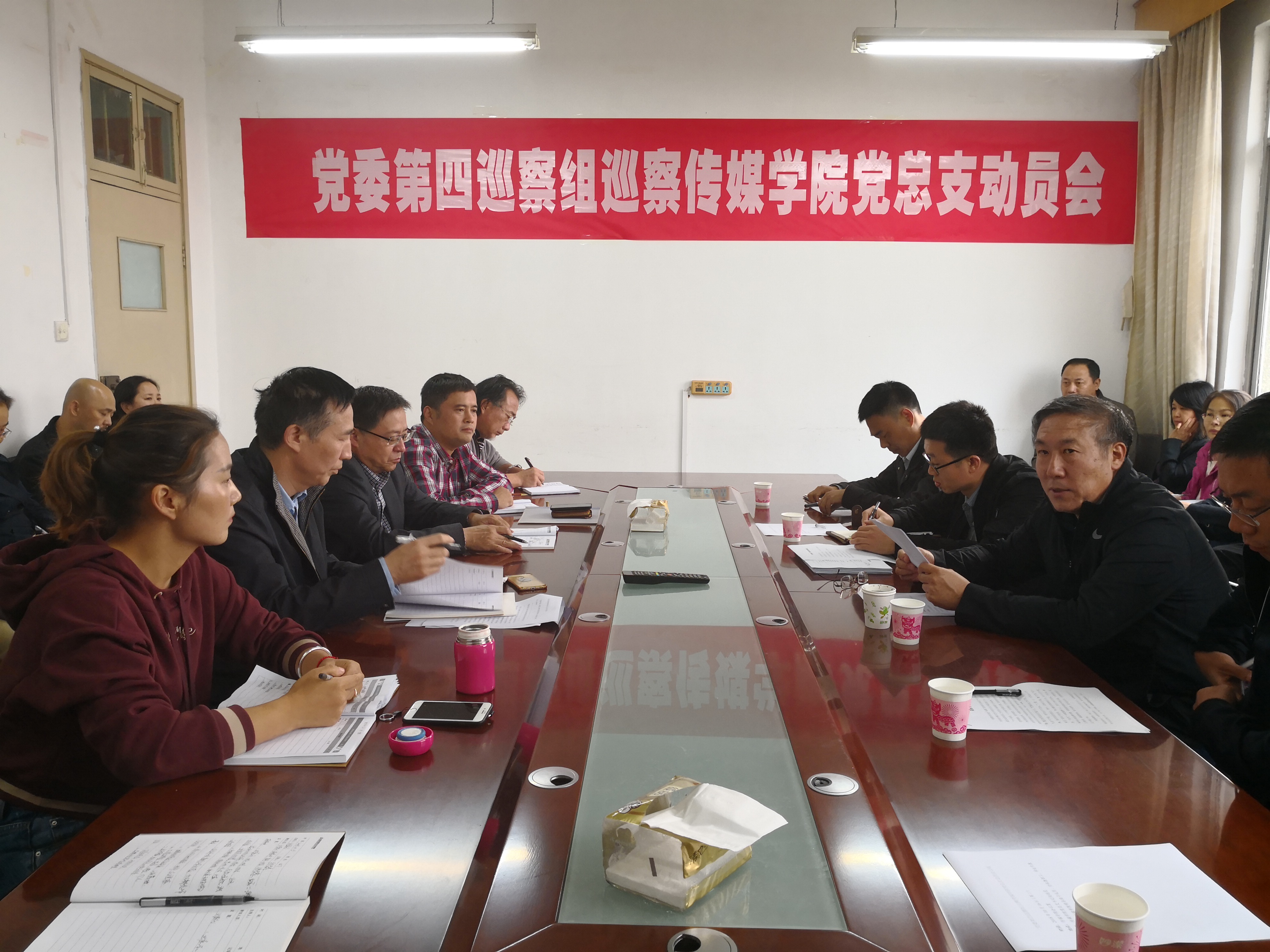10月16日下午,党委第四巡察组召开动员会。巡察组组长吴建林就即将开展的巡察工作作动员讲话,总支书记刘选民主持会议,并代表传媒公司党总支就贯彻落实巡察组要求、配合做好巡察工作作了表态发言。党委第四巡察组副组长宋丹萍及巡察组全体成员,传媒公司班子成员,全体教职工、员工代表参加会议。