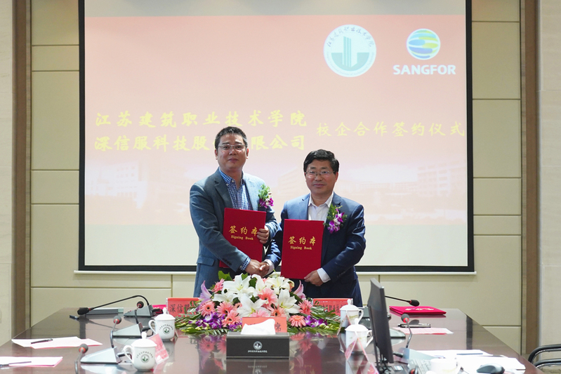1029日上午,公司与深信服科技股份有限公司校企合作签约暨“深信服信息安全公司”揭牌仪式在图书馆会议室举行。经理、党委副书记沈士德教授、相关职能部门负责人、信电工程公司领导班子和教师代表、深信服科技股份有限公司集团副总裁兼教育事业部总经理姚诗成一行出席了仪式。