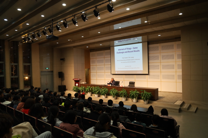 Victor C.M. Leung 教授在讲座中主要介绍了目前物联网技术最新研究进展,包括传感器动态休眠机制、物联网边缘计算等,同时也对万物互联的大世界进行了展望,让在座师生赞叹不已。本次学术讲座专业针对性较强,进一步开阔了学术视野,激励同学们在以后的学习中更加努力拼搏、实现理想。
