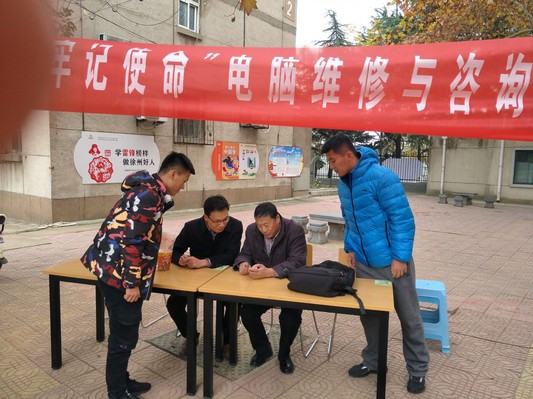 20191129日,信电工程公司党支部组织党员师生开展了“不忘初心、牢记使命”电脑维修与咨询服务志愿活动。