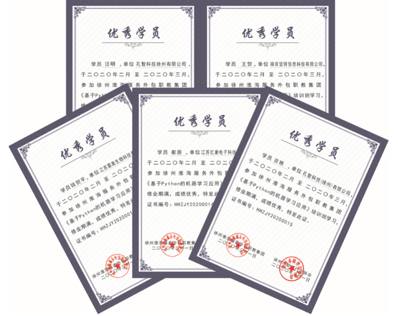 部分优秀学员证书