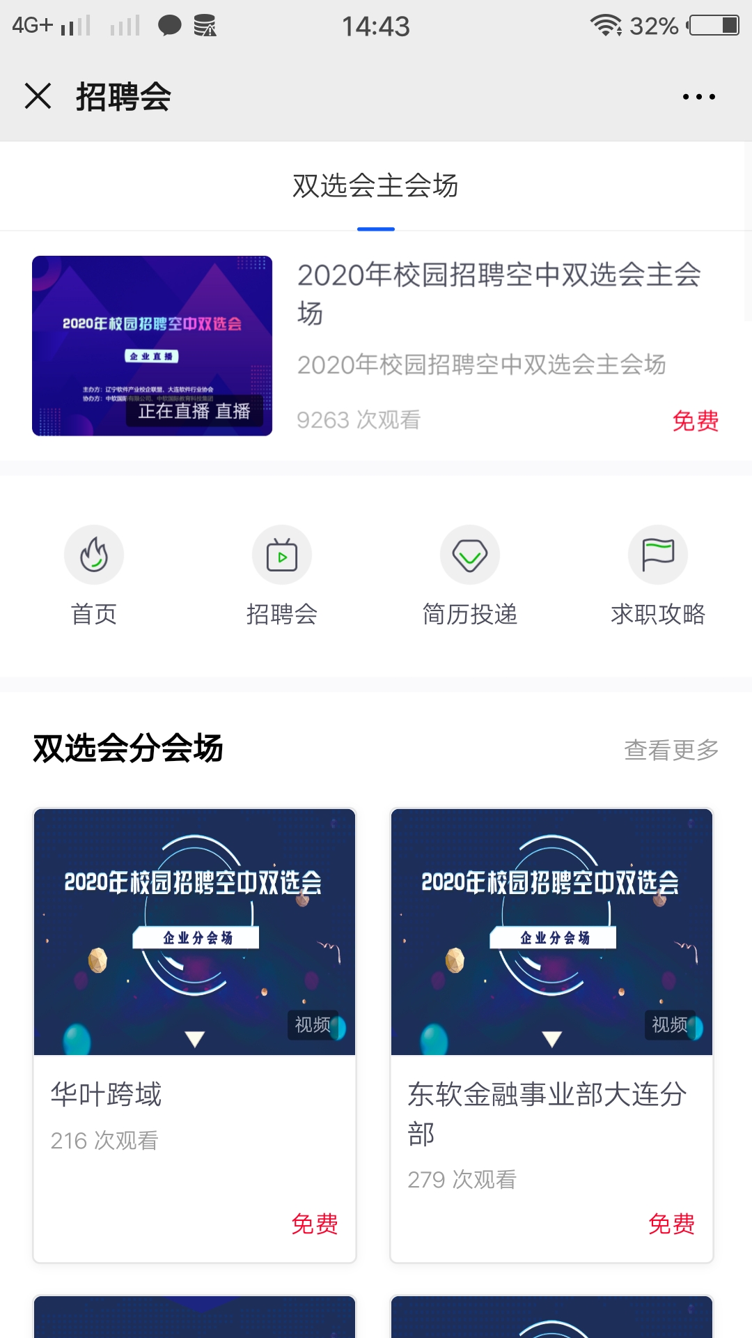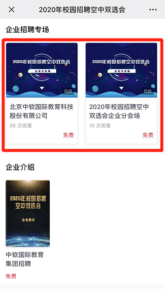 1)、点击“招聘会”按钮,进入招聘会列表页,就可以选择需要的内容进行观看啦!