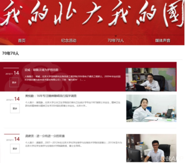 2019年,中华人民共和国成立70周年之际,北京大学举行了“70年70人”的官网报道,梁威入选了“70年70人故事”。