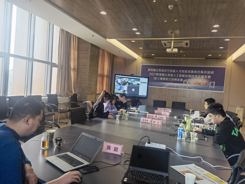 12月12日,第四届江苏省百万技能人才技能竞赛岗位练兵活动一2021年首届江苏省人工智能应用技术技能竞赛(长三角地区江苏预选赛)在南京举办。因疫情原因,在公司设立了江苏建院赛点。