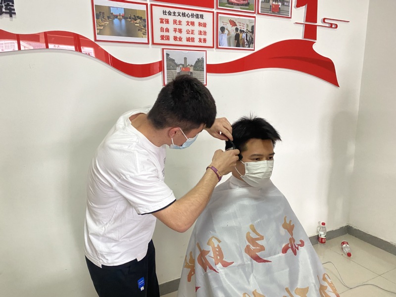 三月四月,草长莺飞,突发的疫情,封闭的校园里,疯狂生长的除了满校园的花儿草儿之外,还有男生们的秀发。虽然公司为在校的八千多名同学们保证了充足的生活物资供应,但很多同学还是为理发犯了愁,面对同学们的紧要关“头”,公司Tony老师再次上线,员工工作办公室被迅速的改造成了“形象工作室”,4月16日下午正式“营业”。