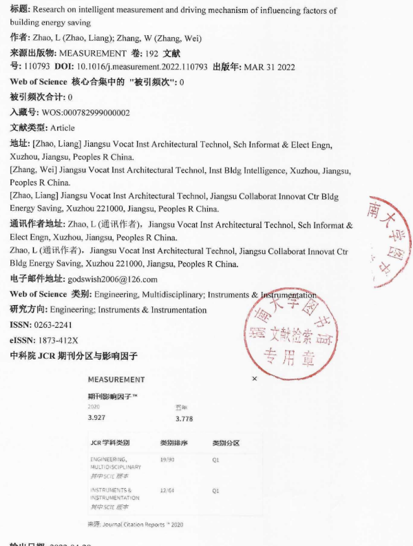 该论文是2021年江苏省高等公司自然科学重大项目“基于知识图谱的建设项目节能驱动机理及BIM 优化策略研究”的研究成果,项目研究已发表JCR 1区论文3篇,核心论文2篇,申报发明专利3件。赵亮副教授在相应方向发表一区论文《Research on intelligent measurement and driving mechanism of influencing factors of building energy saving》、《The track, hotspot and frontier of international hyperspectral remote sensing research 2009–2019》,申请住房和城乡建设部项目(基于BIM的交互式建筑信息模型研究)、江苏省高校自然科学重大项目(基于知识图谱的建设项目节能驱动机理及BIM 优化策略研究)、住房和城乡建设厅项目(利用 BIM 技术进行正向设计的若干关键问题研究)、徐州市科技项目(建设项目全生命周期节能驱动机制与优化策略研究)四项。