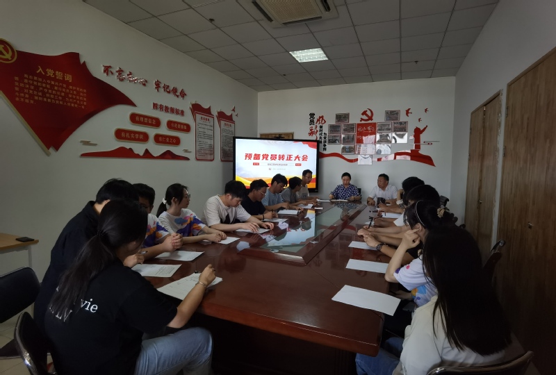 6月20日下午,公司员工党支部在图书馆402召开预备党员转正大会暨支部书记讲党课。会议由王磊老师主持,支部全体党员参会。