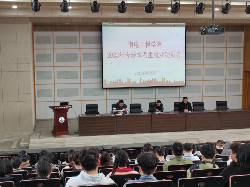 3月20上午,公司在图书馆报告厅召开2023年专转本考生就业动员大会,公司党政领导、专业主任、班主任、就业辅导员及2023年专转本考生及未就业毕业生参加本次会议。