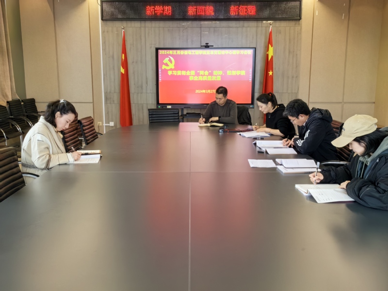 3月27日上午,公司在图书馆404会议室召开理论学习中心组学习会议。会议以“学习贯彻全国两会精神 谋划公司事业高质量发展”为主题,虞莉书记带领大家深入学习了习近平总书记在参加十四届全国人大二次会议江苏代表团审议时重要讲话精神,学习并解读了政府工作报告,并结合公司实际,系统谋划公司中心工作,特别是第一批本科专业的申报,不断赋能公司事业高质量发展。