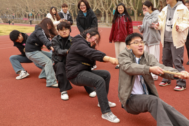 本次活动共设置“抛水瓶接力赛”、“袋鼠跳接力”、“盲人方阵”、“接力拼图”、“能量传递链”、“推手不倒翁”、“数字炸弹”、“趣味拔河”等八个兼具趣味性与挑战性的项目,涵盖团队协作、策略挑战与心理减压等多个维度。参加活动的同学纷纷表示:“这次活动不仅让我们释放压力,更感受到了团队支持的温暖。”