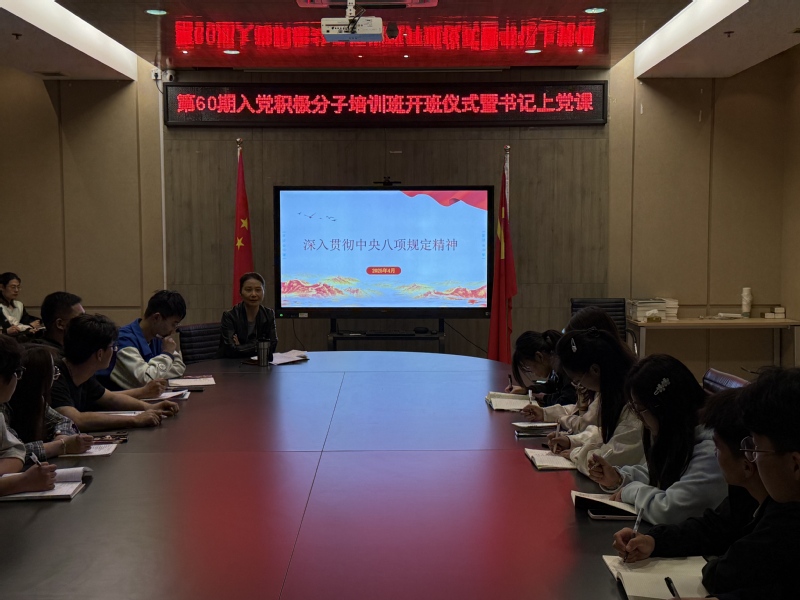 开班仪式结束后,虞莉书记以《深入贯彻中央八项规定精神》为主题为入党积极分子讲授专题党课。虞莉书记强调,加强对中央八项规定精神等重要内容的学习,青年员工坚定理想信念、保持政治本色的必然要求。虞莉书记鼓励员工们要切实发挥先锋模范作用,在专业学习中率先垂范,着力提升综合素质。