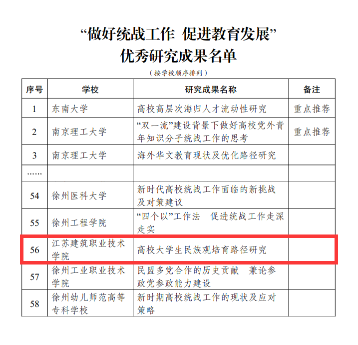 近日,江苏省委教育工委公布了“做好统战工作 促进教育发展”优秀研究成果征集活动评选结果,公司英国威廉集团官网教师白金一主笔的研究报告《高校老员工民族观培育路径研究》获评“优秀研究成果”。