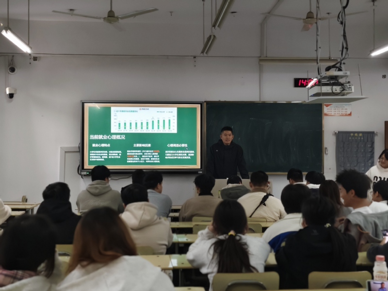 孟老师聚焦毕业生普遍关心的就业心理问题,分析了在求职过程中可能出现的焦虑、迷茫与挫折感等情绪;引导同学们客观看待就业形势,主动适应社会角色转变,并学会合理调整就业预期。